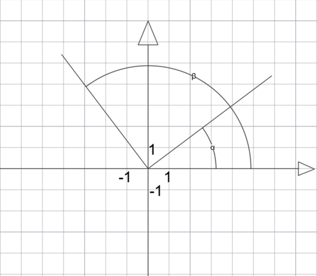 W tym zadaniu narysuj w układzie współrzędnych kąty α i β, wiedząc, że 0° < a < 180°, 0° < β <180°, cos α = oraz cos β = .