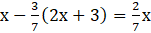 Najpierw pomnóż obustronnie równanie przez 7, aby ułatwić sobie obliczenia, a następnie przenieść wyrażenia z x na jedną stronę, a pozostałe wyrażenia na drugą: