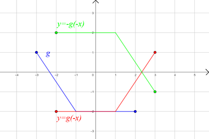 to wykres funkcji g odbity symetrycznie względem osi y, a następnie odbity symetrycznie względem osi x. Pamiętaj, że jeśli wykres funkcji