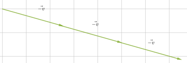 Iloczyn przez liczbę ujemną wektora zwiększa jego rozmiar, tutaj trzykrotnie i odwraca jego kierunek w przeciwną stronę.