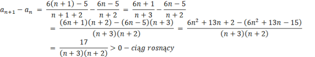 . Jeśli będzie ona większa od zera to ciąg jest rosnący, gdy będzie mniejsza od zera to ciąg jest malejący, a gdy jest równa zero to ciąg jest stały.