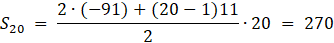 Najpierw podaj pierwszy wyraz ciągu i oblicz jego różnicę. Następnie uzyskane dane podstaw do wzoru na sumę wyrazów ciągu i oblicz.