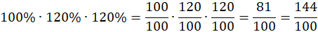 Pomnóż cenę początkową, czyli 100% dwukrotnie przez 120%.