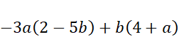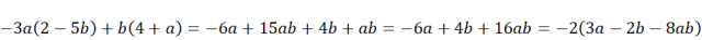 Wymnóż sumy algebraiczne w nawiasach przez jednomiany, a następnie zredukuj wyrazy podobne. Kolejno wyłącz wspólny czynnik przed nawias.