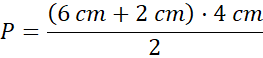Pole trapezu obliczamy dodając do siebie długości podstaw, mnożąc to przez wysokość, a cały wynik dzieląc przez 2.