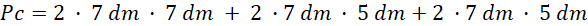 Policz pole całkowite bryły o wymiarach: 7 dm, 7 dm, 5 dm.