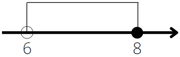 Jest to przedział prawostronnie domknięty, więc przy 6 musi być niezamalowany okrąg, a przy 8 zamalowane kółko.