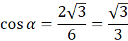 Cosinusem kąta α nazywamy stosunek długości przyprostokątnej leżącej przy kącie α do długości przeciwprostokątnej.