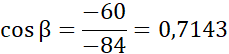 -60 = -84 ∙ cos β / : (-84)