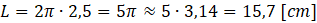 Oblicz przybliżoną długość okręgu o podanym promieniu i zaokrąglij wynik do jednego miejsca po przecinku.