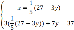 Wyznacz x z pierwszego równania i podstaw do drugiego: