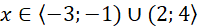 Dziedzina funkcji to wszystkie argumenty funkcji – to znaczy, że określamy dziedzinę, patrząc na oś x. Ta funkcja jest ciągła, więc dziedzina będzie przedziałem. Odczytaj odpowiednie współrzędne.