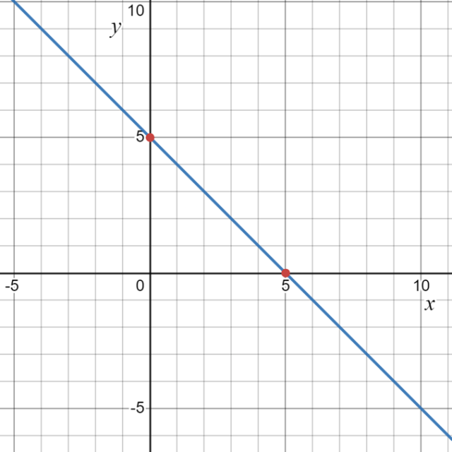 Punkt przecięcia z osią y możesz określić na podstawie wyrazu wolnego we wzorze funkcji f(x) = -x + 5, lub podstawiając x = 0.