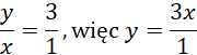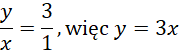 Wiadomo, że x i y są wprost proporcjonalne – to znaczy, że ich iloraz jest stały. Zapisz proporcję, a następnie wyznacz wzór na y.