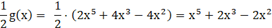 Funkcję u i w powstają jako kombinacje liniowe funkcji f i g. Najpierw zapisujemy ich wzory, a potem zapisujemy jaka jest najwyższa potęga w każdym z wielomianów.