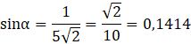 Wyliczamy długość brakującego boku. Z tablic matematycznych odczytujemy wartość kąta, którego sinus jest najbliższej wartości 0,1414.
