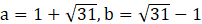Wyznacz długość przyprostokątnych a i b, jeśli bok dużego kwadratu ma długość 8, a bok małego – długość 2.