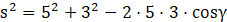 Dla dowolnego trójkąta kwadrat jednego z boków jest równy sumie kwadratów dwóch pozostałych odjąć podwojony iloczyn długości tych boków oraz cosinusa kąta między nimi.