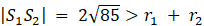 Okręgi O1 i O2są rozłączne zewnętrznie.
