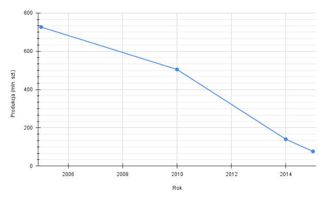Produkcja żarówek żarowych znacząco spada, ponieważ obecnie częściej używa się żarówek typu LED, które zużywają mniej energii elektrycznej i są bardziej przyjazne dla środowiska.