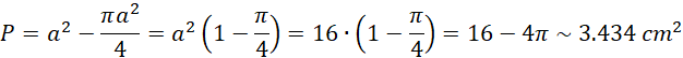 Jest to odejmowanie pola kwadratu od pola czterech ćwierć-kół wewnątrz kwadratu.