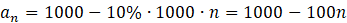 W tym zadaniu musisz zapisać wzór na cenę towaru, jeśli kosztuje 1000 zł, a jego cena będzie spadać o 10% ceny początkowej tygodniowo.