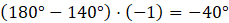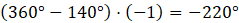 Jest on dopełnieniem kąta α do kąta półpełnego, lecz ma przeciwny kierunek obrotu ramienia końcowego. Zatem miara kąta czerwonego to: