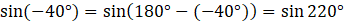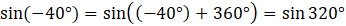 Przekształć sinus kąta (-40°):