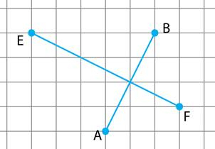 W tym zadaniu musisz narysować ukośny odcinek AB o wierzchołku w punktach kratowych, a następnie dorysować odcinek EF prostopadły do AB i przecinający AB.