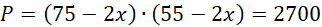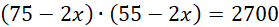 W tym zadaniu musisz obliczyć szerokość ramy obrazu o polu 2700 i wymiarach zewnętrznych x = 75 cm, y = 55 cm.