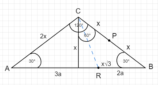 Linia, która została poprowadzona, podzieliła trójkąt na dwa mniejsze. Nowy trójkąt zawiera w sobie kąty 90, 30 i 60 stopni dzięki czemu można stwierdzić, że połowa najdłuższego boku trójkąta wynosi