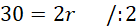 Korzystając ze wzoru na długość średnicy, oblicz długość promienia.