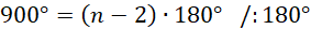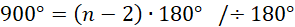 W tym zadaniu należy ile boków ma wielokąt foremny o sumie miar kątów wewnętrznych równych 900°.