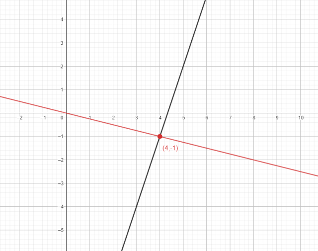 Stwórz szkice wszystkich prostych wchodzących w skład układu równań. Rozwiązaniem tego układu są współrzędne punktu przecięcia wszystkich prostych. Następnie rozwiąż algebraicznie ten układ.