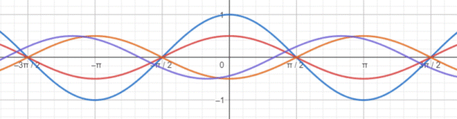(kolor czerwony). Kolejno odbij go symetrycznie względem osi OX (kolor pomarańczowy). Na koniec przesuń wykres o wektor