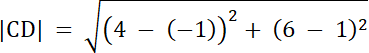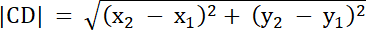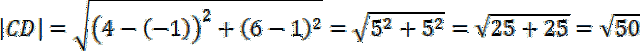 Oblicz długość odcinka CD, korzystając ze wzoru na odległość między dwoma punktami: