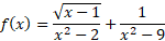 Zauważ, że wyrażenie pod pierwiastkiem będzie większe bądź równe 0. Wyrażenia w mianownikach ułamków nie mogą być równe 0, więc pierwiastki tych równań wypadną z dziedziny. Zapisz przedział dziedziny funkcji z wyeliminowanymi pierwiastkami mianowników.