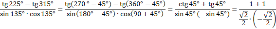 to zachodzi kofunkcja, czyli zamiana funkcji na przeciwną (sinus na cosinus, tangens na cotangens). Odczytaj wartości funkcji z tablic.