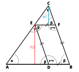 Wykorzystaj skalę podobieństwa trójkątów ADE i EFC. Oblicz pole DBFE jako .