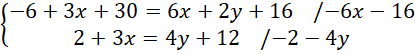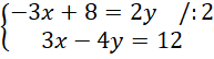 Rozwiązaniem układu równań jest para liczb o różnych znakach.