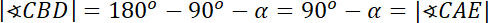 Oznacza to, że trójkąty AEC i BCD są podobne z cechy KKK – odpowiadające sobie kąty mają równe miary.