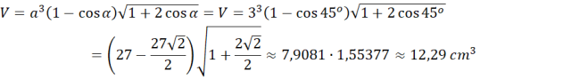 Wyznacz objętość romboedru którego ścianami są romby o boku długości 3 cm i kącie ostrym