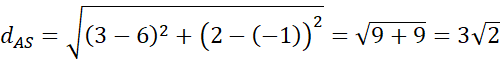 Wyznacz odległość punktu A(3,2) od środka odcinka BC.