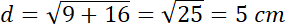 Wyznacz cosinus kąta zawartego między przekątnymi ścian bocznych wychodzącymi z tego samego wierzchołka, jeśli wysokość prostopadłościanu jest równa 4 cm, a jego podstawą jest kwadrat o boku 3 cm.