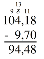 W odejmowaniu ułamków dziesiętnych sposobem pisemnym pamiętaj o zapisaniu liczb tak, by w kolumnie znajdowały się cyfry jednego rzędu. Odejmowanie zacznij od liczb najmniejszego rzędu.