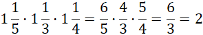 Najpierw zapisz liczby mieszane jako ułamki niewłaściwe. Możesz skracać licznik jednego ułamka z mianownikiem drugiego. Zapisz wynik jako liczbę naturalną.
