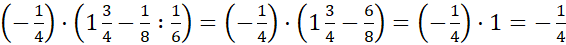 Pamiętaj, najpierw wykonujemy działania w nawiasach, w nich pierwszeństwo przed odejmowaniem ma dzielenie. Pomnóż jedną szóstą przez odwrotność jednej ósmej, czyli 8. Następnie wykonaj odejmowanie. Wynik podziel przez