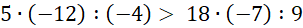 Kiedy w mnożeniu lub dzieleniu występują liczby ujemne, należy policzyć ilość. Jeżeli ich liczba jest nieparzysta – znak wyniku będzie ujemny, a jeżeli jest parzysta – dodatni. Dlatego też po lewej stronie równania wynik będzie dodatni, a po prawej – ujemny. Liczba ujemna zawsze jest mniejsza od dodatniej.
