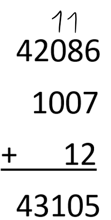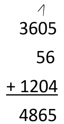 Aby dodać liczby sposobem pisemnym, dodaj cyfry w tych samych kolumnach i zapisz ich sumę pod kreską w tej samej kolumnie. Jeśli wynik jest większy od 9, cyfrę jedności napisz w tej samej kolumnie, a cyfrę dziesiątek dodaj do następnej kolumny po lewej.