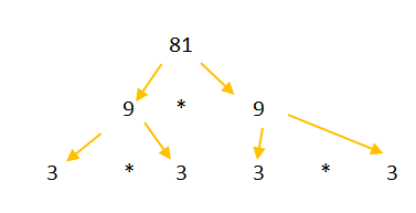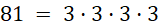 Wypełnij luki w drzewku i napisz liczbę 81 w postaci iloczynu liczb pierwszych.
